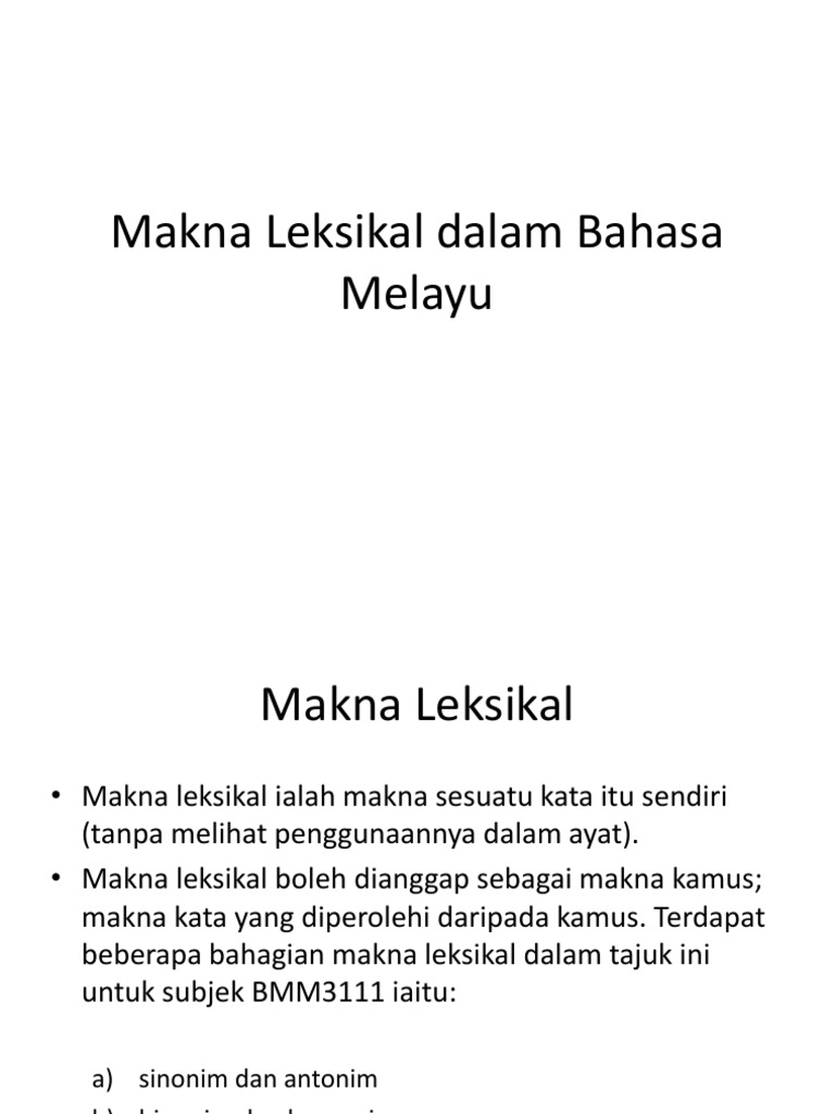Makna Leksikal Dalam Bahasa Melayu Pdf